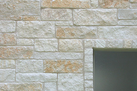 True Stone is a 1.25" thick real stone veneer. It is available in face heights ranging from two to twelve inches. True Stone is available in Palamino gold, and white. We offer true stone “tumbled” with a softer more natural look or with sawed edges. This veneer covers roughly 200 sq. ft. per ton.